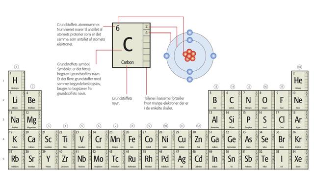 - grundstoffer, og hvordan de er ordnet i grundstoffernes periodesystem