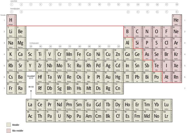 Prøv at finde de her nævnte grundstoffer i det periodiske system. Læg mærke til deres forkortelser. Hvilke andre grundstoffer kender du?